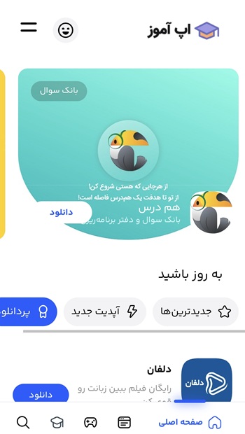 برنامه اپ آموز شامل بخش های مختلف و کاربری ساده است.